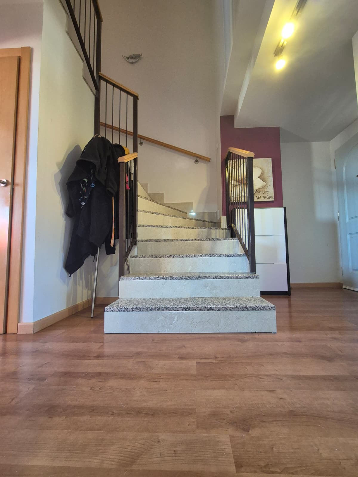 Subiendo a la planta superior, un segundo hall distribuye un baño completo, dos acogedores dormitorios, uno de ellos con armario empotrado y una habitación principal que es un verdadero refugio, con baño privado y armarios empotrados que ofrecen mucho espacio de almacenamiento. También disfrutarás de una terraza cubierta, ideal como zona de lavandería.