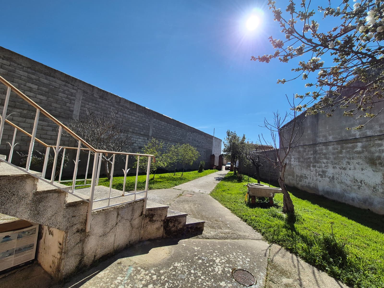 En el exterior, la propiedad se asienta sobre una amplia parcela de aproximadamente 1.800 m², que incluye patio ajardinado con árboles y plantas, así como un gran corral con pozo de agua potable y edificaciones anexas, ideales para almacenaje, garaje o uso agrícola.